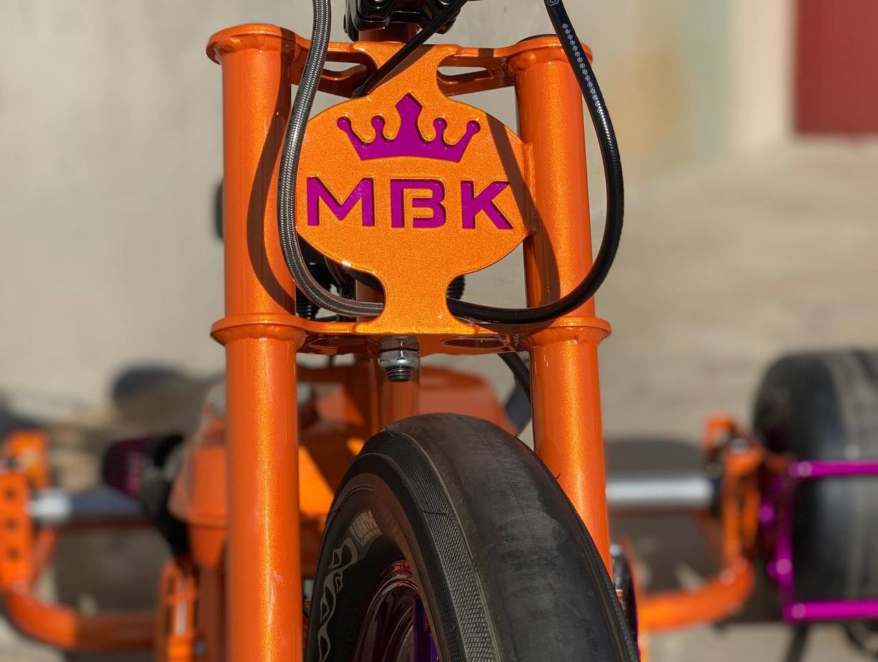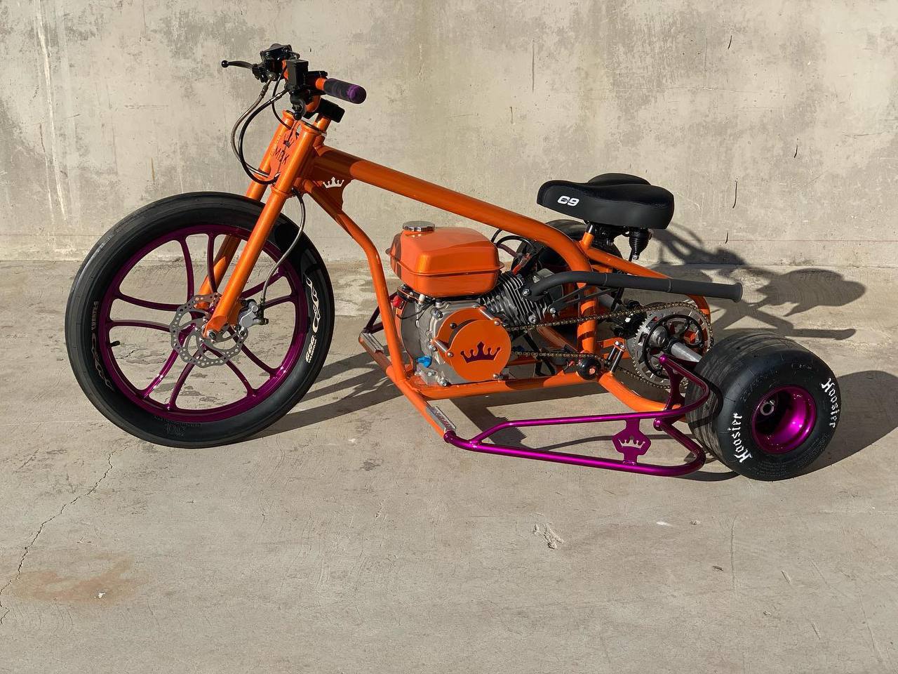 Its striking custom color combination—bright orange frame with metallic purple accents—makes it stand out wherever it goes. Perfect for recreational riders, hobbyists, and motorsport enthusiasts looking for something unique, stylish, and exciting.